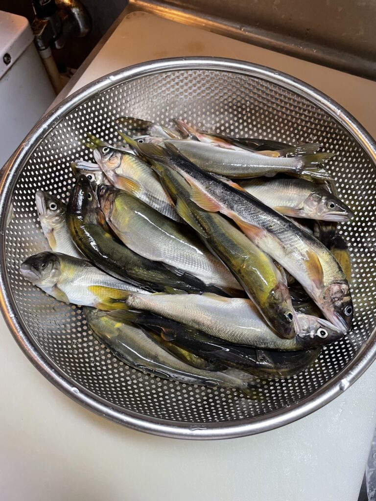 おととしもこの水域で落鮎を数釣りして食べた記憶があります。ホクホクした卵がとても美味しかったんです。今年もまたあの美味しさが楽しみです。