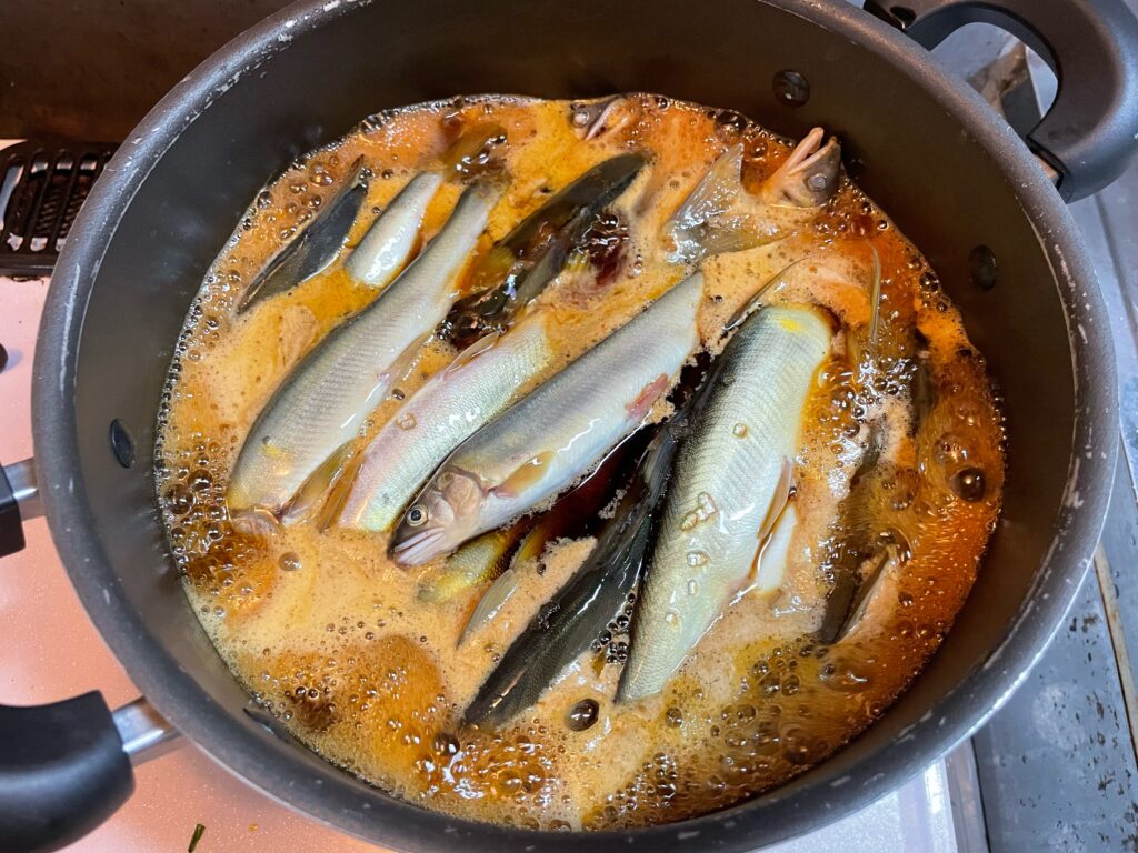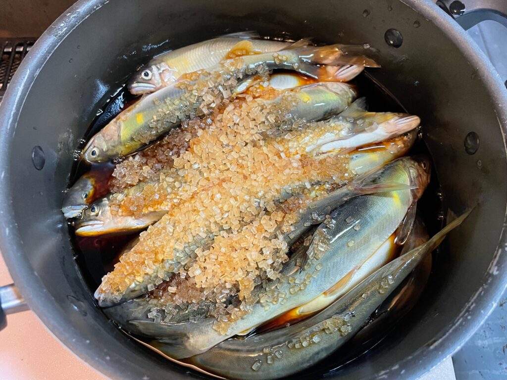 量もあるし時間をかけて食べたいので甘露煮にしてみようと思って料理をしました。産卵期の卵に期待してあえて内臓はそのままに丸ごと料理します